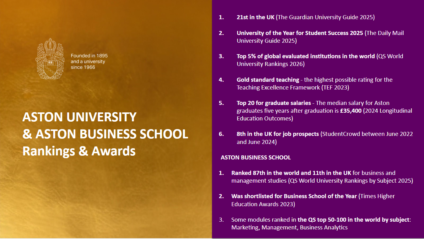 Xếp Hạng Và Giải Thưởng Nổi Bật Của Aston University Năm 2025
